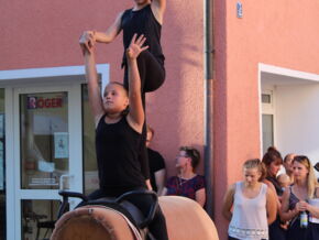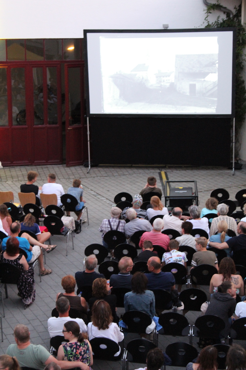 Das Zentrum war Treffpunkt und Schauplatz sehenswerter Aktionen, die Aufmerksamkeit und Interesse redlich verdient haben. Der anerkennende Beifall für ihre bemerkenswerten Beiträge gebührte der Stadtkapelle unter der Leitung von Georg Kulzer, die klassische Märsche und Polkas anstimmte, ebenso der Voltigiergruppe vom Gut Waffenschmiede, die Judokas des TSV und die bezaubernden Mädel der von Sophia Eis betreuten Tanzgruppe. Gefallen haben dem Publikum auch die Maschen der Mode, die das Team der Kleiderkammer Wörth präsentierte. Pudelwohl fühlten sich die Besucher dort, wo Speis und Trank, Begegnung, Gespräch und Gemeinschaft gefördert worden sind: bei der Pizzeria „La Posta“, bei der Taverna Kranetas, beim Gasthof Geier, nicht zuletzt in der Popcorn-Ecke und an der Cocktailar der KLJB Wörth. Ruhiger wurde es in den gastlichen Stätten erst beim Filmstart. Ins Blickfeld rückte zum Abschluss eines rundum angenehmen und ansprechenden Abends die alten Porträts von Wörth aus der Haag-Bildersammlung und die schwäbische Mundartkomödie „Die Kirche bleibt im Dorf“, die den Zank und Hader der beiden Dörfer Ober- und Unterrieslingen kurzweilig und wirksam in Szene setzt.