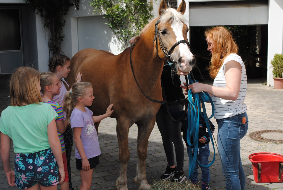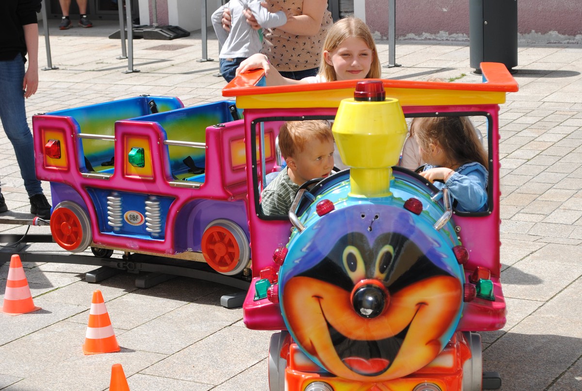 Die jungen Gäste versammelten sich gerne beim Voltigier-Verband vom Gut Waffenschmiede, wo die Mädchen und Buben ein Pferd streicheln und im Sattel Platz nehmen durften. Ein Erlebnis für die Kleinen. Anschließend empfahl sich noch eine Rundfahrt in der Bimmelbahn, die regelmäßig ihre Runden drehte. Unterwegs war – wie so oft – auch Hans Scheibenpflug mit seiner Drehorgel und jedem Passanten freundlich begegnete.