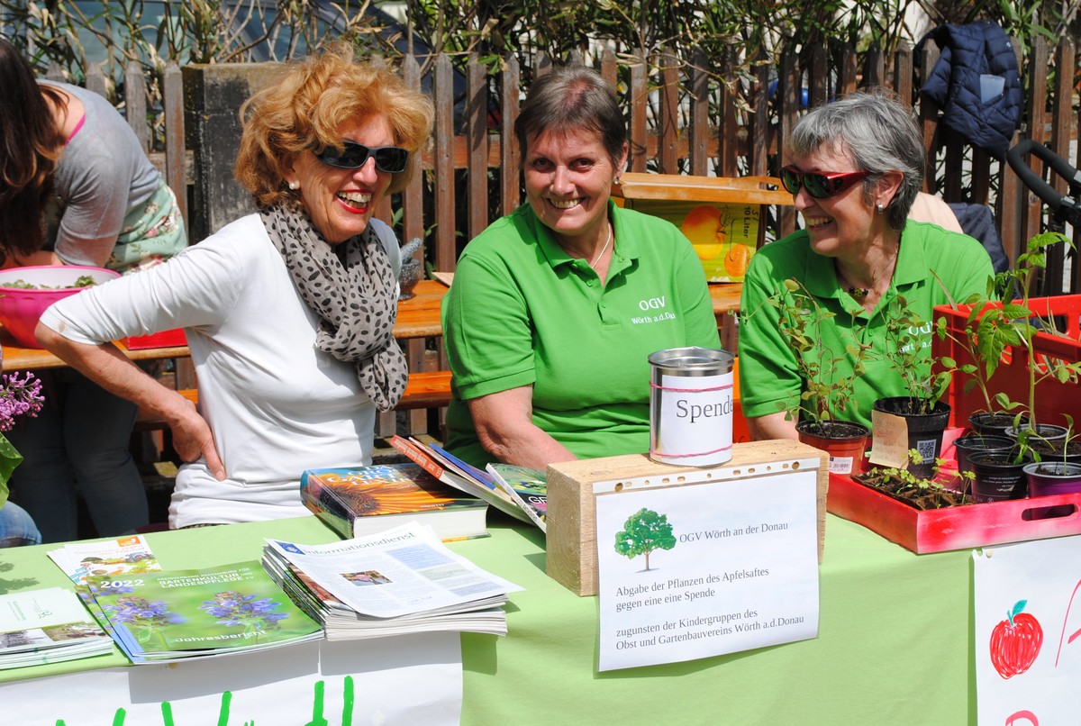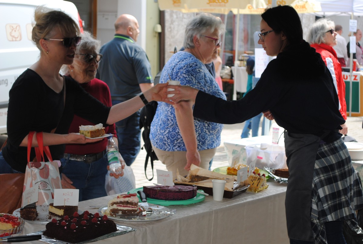 Zum festen Stamm der Teilnehmer gehören mittlerweile die Damen der Ukraine-Hilfe, die ihre Gäste mit Kaffee und leckeren Torten versorgten. Jeder eingenommene Euro wird für die Menschen im Kriegsgebiet verwendet, die auch 14 Monate nach dem Überfall Russlands Zeichen des Wohlwollens, des Mitgefühls und der Humanität brauchen. Den Wunsch nach süßen Gaumenfreuden konnten auch das Team des TSV, das insbesondere für das 150-jährige Gründungsfest vom 23. bis 26. Juni die Werbetrommel rührte, und die Vertretung der DLRG Wörth-Hofdorf erfüllen, die gerade eben eine bedeutende Aufgabe begonnen und ein Zukunftswerk in Angriff genommen hat. Für den neuen Stützpunkt, der neben dem Hallenbad entsteht, benötigt die Vorstandschaft reichlich Rücklagen. Offen für Gespräch und Gedankenaustausch waren nicht zuletzt die Damen vom OGV, die den Ertrag des Pflanzenverkaufs für die Jugendarbeit auf die hohe Kante legen werden, sowie Gerhard Härtel und Mathias Kohlmeier, die im Gewerbepark eine TÜV-Station eingerichtet haben.
