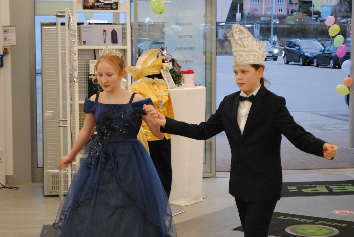 Anschließend waren die Majestäten an der Reihe. Emma Schaller aus Wörth und Nick Möbius aus Frengkofen, Prinzenpaar des kleinen Hofstaates, sowie Sophia Menath und Sascha Weiß, beide aus Pfatter, stellten sich im Walzerschritt vor. Nach dem Auftritt durften sie noch ihres Amtes walten. Rosi Schuller und Elke Weichser wurden in den Kreis der Ordensträger aufgenommen. Das Thema dieses Schmuckstücks könnte in diesen schweren Zeiten für die Faschingsfreunde durchaus Motto und Ansporn für die Zukunft sein: „The show must go on!“