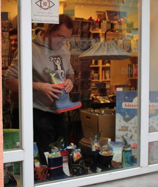 Damit es für die Kinder und Eltern abwechslungsreicher ist, wurden die gefüllten Stiefel in einem der sechs Schaufenster „versteckt“. Und jeder fünfte Stiefel enthielt zusätzlich noch einen Einkaufsgutschein des Werbekreises in Höhe von 5 Euro.