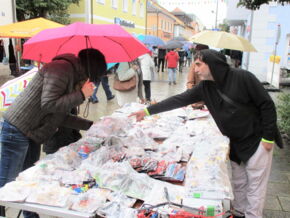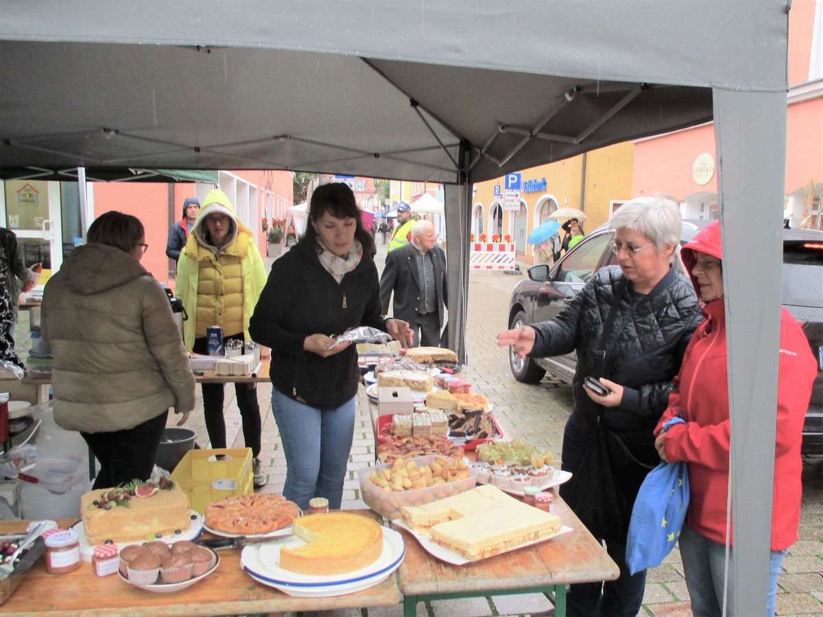 Besseres Wetter, größere Aufmerksamkeit und vor allem mehr Gäste in der Kaffee-Station hätte sich nicht zuletzt die Gemeinschaft um Tanja Raith gewünscht, die seit Monaten Flüchtlingen aus den Kriegs- und Krisengebieten der Ukraine mit Rat und Tat zur Seite steht. Bei dieser notwendigen Hilfe kommt es auf jede Spende an, jeder Euro wird auf dem Konto der Mitmenschlichkeit verbucht. Zumindest entsprach aber der Absatz von Torten und Kuchen den Erwartungen. Die meisten Passanten nahmen sich mindestens ein Stück der leckeren Eigenproduktionen mit nach Hause.