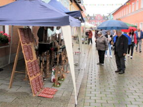 Trüber Himmel, unangenehm kühl, durchgehend regnerisch: Gegen diese ungemütlichen Umstände kommt die beste Vorbereitung einer Veranstaltung nicht an. Das Wetterpech begleitete den verkaufsoffenen Sonntag des Werbekreises Wörth von Anfang an bis zum Finale am Nachmittag. Interesse und Zuspruch hielten sich an diesem Markttag – verständlich und erwartungsgemäß bei diesen Verhältnissen – in Grenzen. Wer mag da schon durch die Straßen schlendern, nach einem preiswerten Schnäppchen Ausschau halten oder auf einer Sitzbank bei Bier und Brotzeit verweilen? Die Bereitschaft, einer warmen Stube den Rücken zu kehren, ist bei diesen widrigen Bedingungen nicht sonderlich stark ausgeprägt. In den Fachgeschäften war der Besuch jedoch erkennbar besser als bei den Partnern, die draußen in der Ludwigstraße tapfer die Stellung hielten.