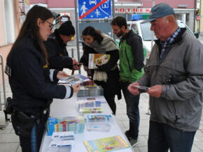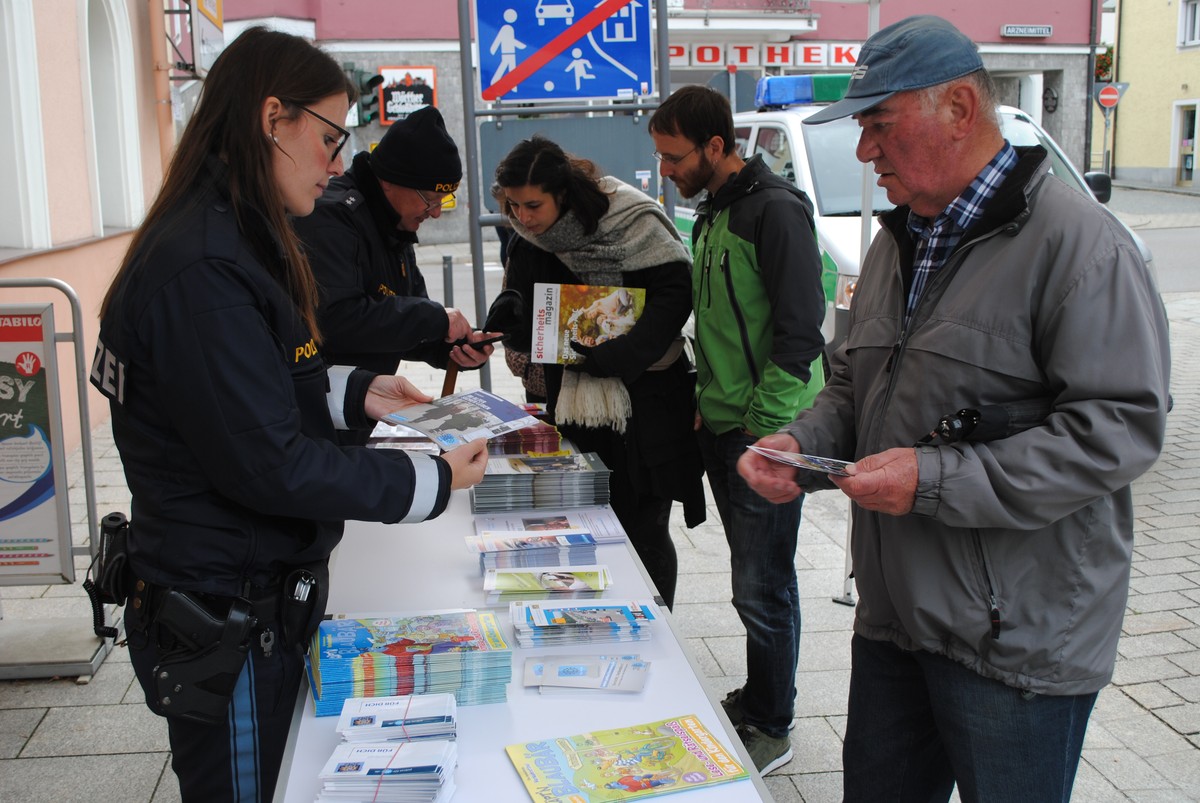 Präsenz der Polizei: Beratung und Broschüren zu den Themen Schutz und Sicherheit. -