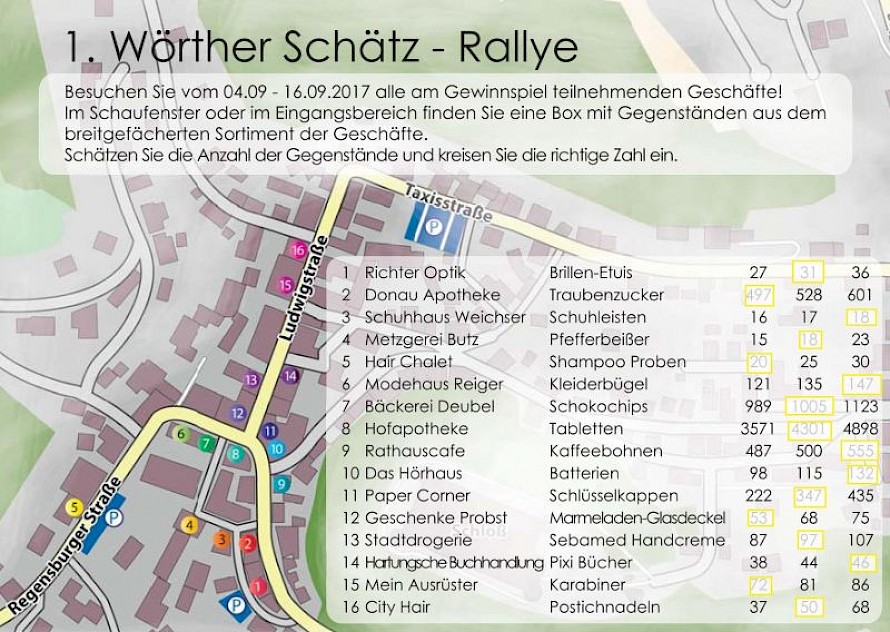 Bei der „1. Wörther Schätz-Rallye“ von 04.09.-16.09.2017 wurden folgende 10 Gewinner gezogen:
